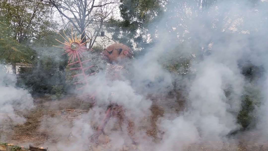 Unas tenazas del herrero de Fuencaliente, que están en una mano, son un pequeño homenaje al que dio consejos desde la experiencia y nos ha cedido el suministro eléctrico: «El herrero de Fuencaliente» ( que precisamente trabajó en el cerramiento de las pinturas rupestres para que no sean expoliadas).