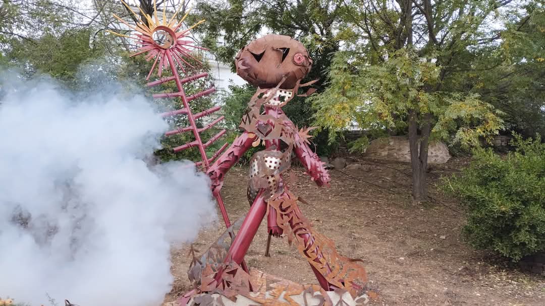 La escultura conmemora el centenario de la declaración como Monumento Nacional de las Pinturas Rupestres de Fuencaliente (Ciudad Real).